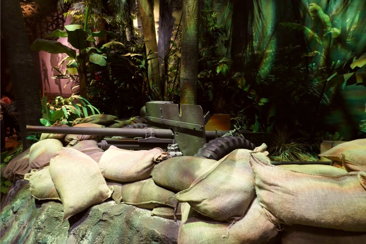 As with other exhibits, story boards and videos are set in a battlefield context.